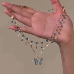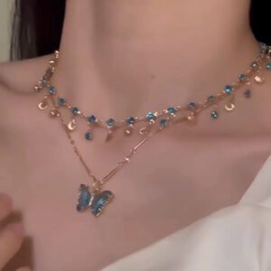 “Love of the Blue Butterfly” Women’s Blue Butterfly Necklace, a New and Popular Double-layered Collarbone Necklace Accessory for Women in 2024